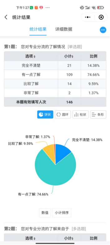 特别值得一提的是,本次现场问卷共回收146份有效问卷,我们发现,有89.04%的同学表示在本次宣讲会之前,对专业分流的情况仅了解一点甚至一无所知。