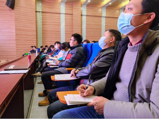 成金华首先强调了党的十九届六中全会召开的重大历史意义,并从会议基本情况、重大成果、主要精神和个人学习体会四个方面进行讲授。他以《中共中央关于党的百年奋斗重大成就和历史经验的决议》为重点,带领大家全面学习了党的百年奋斗的重大成就和历史经验,强调要把握三次“伟大飞跃”、十个“明确”、两个“确立”、十三个方面总结和一个“号召”,从党的百年奋斗中看清楚过去我们党为什么能够成功、弄明白未来我们党怎样才能继续成功,要牢记我们党是什么、要干什么这个根本问题,从而把握历史发展大势,更加坚定、更加自觉地践行初心使命,在新时代更好坚持和发展中国特色社会主义,不懈推进中华民族伟大复兴。