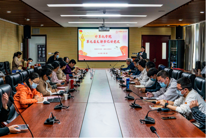 会议邀请了三位教工党支部书记做党课示范。大数据系党支部书记宋维静分享了《习近平谈治国理政(第四卷)》坚持敢于斗争部分的学习体会。人工智能系党支部书记孙琨分享了红旗渠精神的学习体会。信息安全系党支部书记马钊分享了“坚持人民至上”的学习体会。