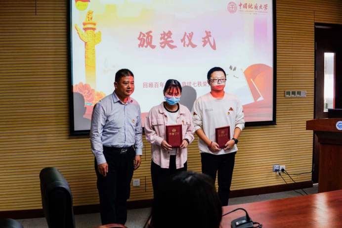 唐忠阳书记为教工组优秀奖获得者代表颁发荣誉证书。