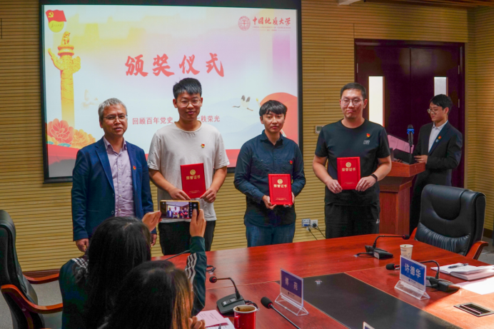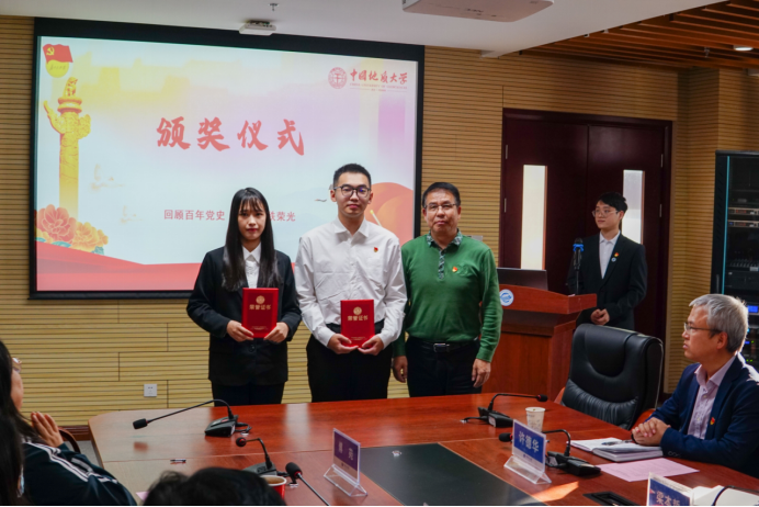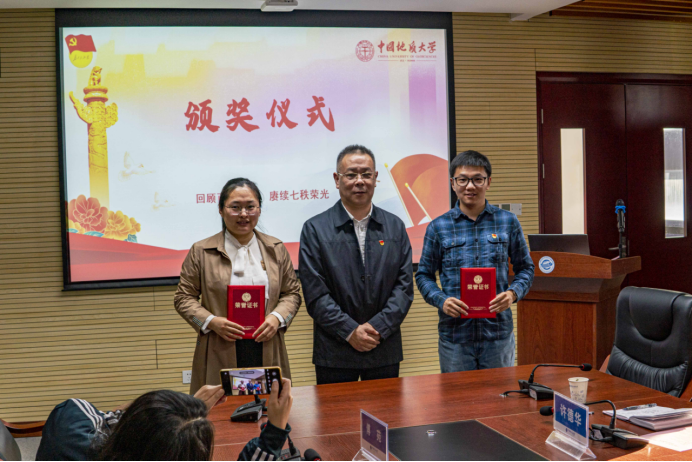 11月2日下午,williamhill英国第九届“支部书记讲党史”学生党支部书记组决赛及颁奖仪式在323会议室隆重举行。校党委副书记、纪委书记唐忠阳,校党委组织部正处级专职组职员梁本哲,高等研究院党委书记赵来时,地理与信息工程学院党委书记许德华,校党委组织部副部长何建新,环境学院党委副书记王海锋,未来城校区办公室副主任、党支部书记高莹莹,材料与化学学院党委委员、材料系第二党支部书记马睿应邀出席,williamhill英国党委书记李国昌,williamhill英国党委副书记、纪委书记傅苑参加活动,教工党支部代表现场观摩。学生党建办公室副主任孔翔担任活动主持。