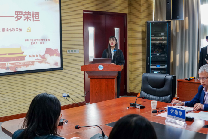 2020级硕士联合党支部书记陈慧分享的主体是“政工巨匠——罗荣桓”。