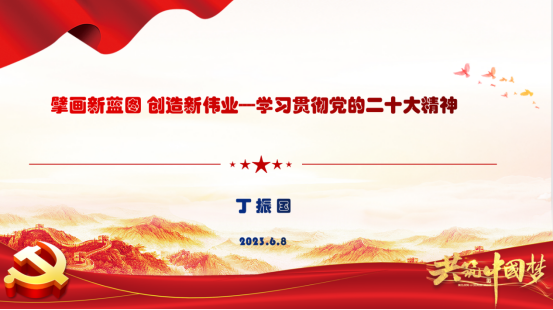 丁振国教授首先深刻阐明了党的二十大是一次十分重要的、具有里程碑意义的大会。不同于泛泛而谈,丁老师引经据典深刻指出大会通过的报告是中国共产党团结带领全国各族人民夺取新时代中国特色社会主义新胜利的政治宣言和行动纲领,是一篇马克思主义的纲领性文献,“两个确立”反映了全党全军全国各族人民共同心愿,对新时代党和国家事业发展、对推进中华民族伟大复兴历史进程具有决定性意义。