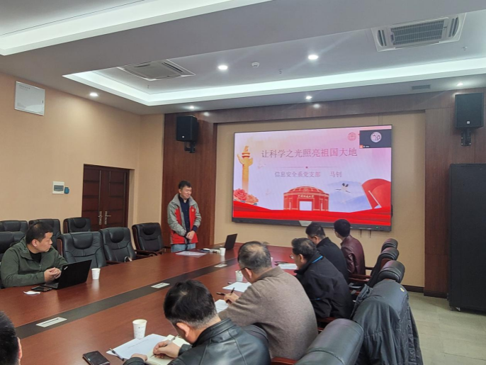 信息安全系党支部书记马钊以“让科学之光照亮祖国大地”为题,分享了自己观看学校原创话剧《大地之光》的体会,回顾了李四光先生的感人故事,强调我们要弘扬爱国主义精神,自觉落实立德树人根本任务,学做大先生。