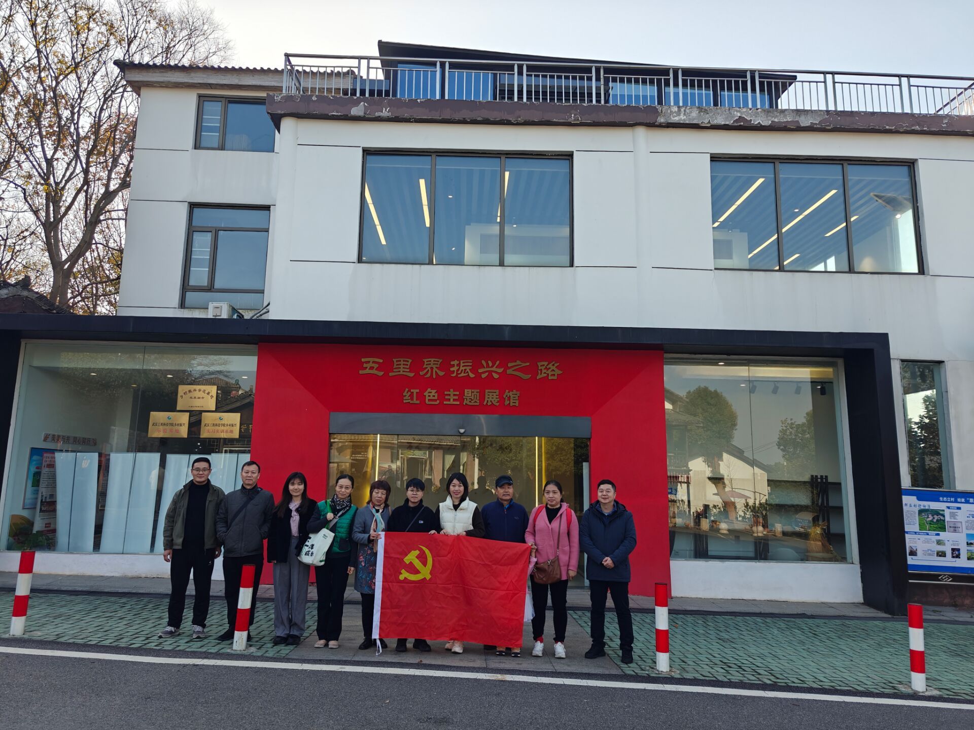 大家首先来到五里界振兴之路红色主题展馆,该展馆是一个融合党建+、街道历史人文、乡村振兴、文娱文创、旅游互动及招商洽谈的综合性展馆,这也是湖北省首个开在农庄内的党建基地。
