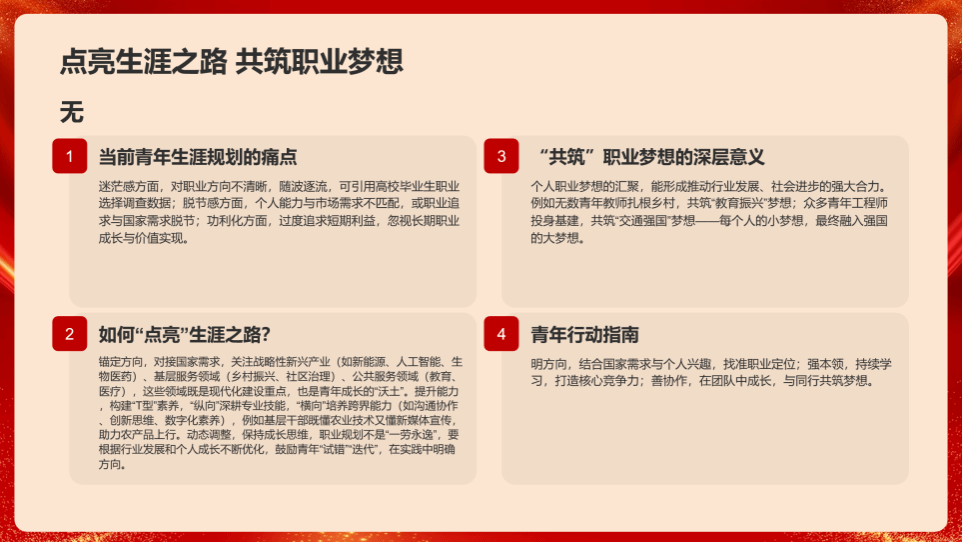 结语环节,姜宇引用李大钊的名句“以青春之我,创建青春之家庭,青春之国家,青春之民族。” 发出号召。此次活动打破传统模式,将思想引领与职业规划深度融合,团员们纷纷表示,将以活动为契机,深入学习全会精神,积极备战职业规划大赛,以青春之笔、实干之墨书写中国式现代化建设的青春华章。