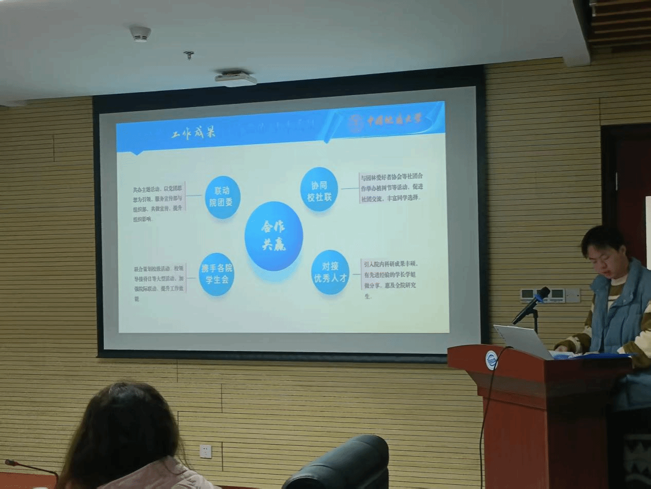 研究生会权益服务部展示了学生服务工作、大型活动组织、协同服务工作等成果,体现其“主动付出,不计回报”的工作宗旨。未来,他们将持续推行活动精细化管理、强化内部沟通协作,不断增强服务能力与团队凝聚力。