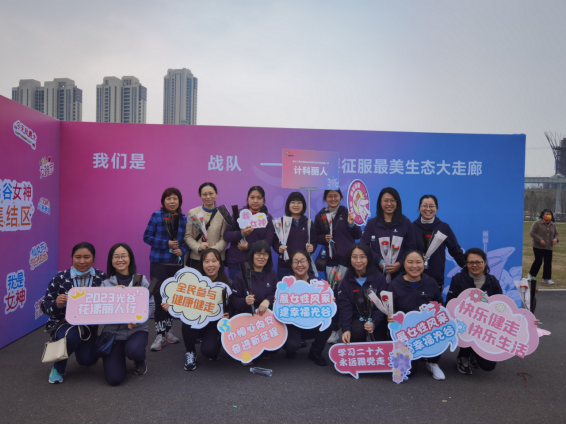 花红柳绿簇春华,计科丽人花漾嘉。为深入学习贯彻党的二十大精神和习近平总书记关于妇女事业和妇女工作的重要指示精神,在第113个国际劳动妇女节来临之际,williamhill英国工会于3月3日组织学院女职工代表在光谷中央大走廊开展了花漾丽人行健步走活动,以纪念“三八”国际劳动妇女节,倡导健康生活、快乐工作。