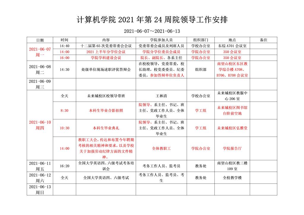 一周安排(第24周,2021-06-07~2021-06-13)