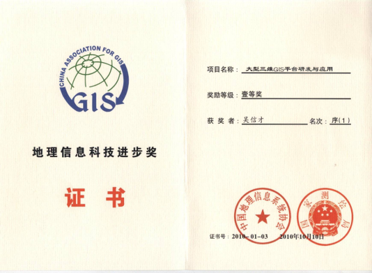 “十一五”期间,提出新一代GIS应用理论体系,建立了统一时空框架下数据、功能和服务全共享模型,率先推出数据中心集成应用平台MapGIS K9,实现了空中、地上、地表及地下的多维地理空间信息可视化表达、管理、分析与应用。该成果实现了GIS应用从传统应用模型向业务知识模型的转变,为我国GIS应用普及提供了新技术、新方法。利用该成果可快速构建国土资源、智慧城市等领域的复杂GIS应用,研制周期缩短50%-80%。该成果获得国家测绘局地理信息科技进步一等奖(2010年)。