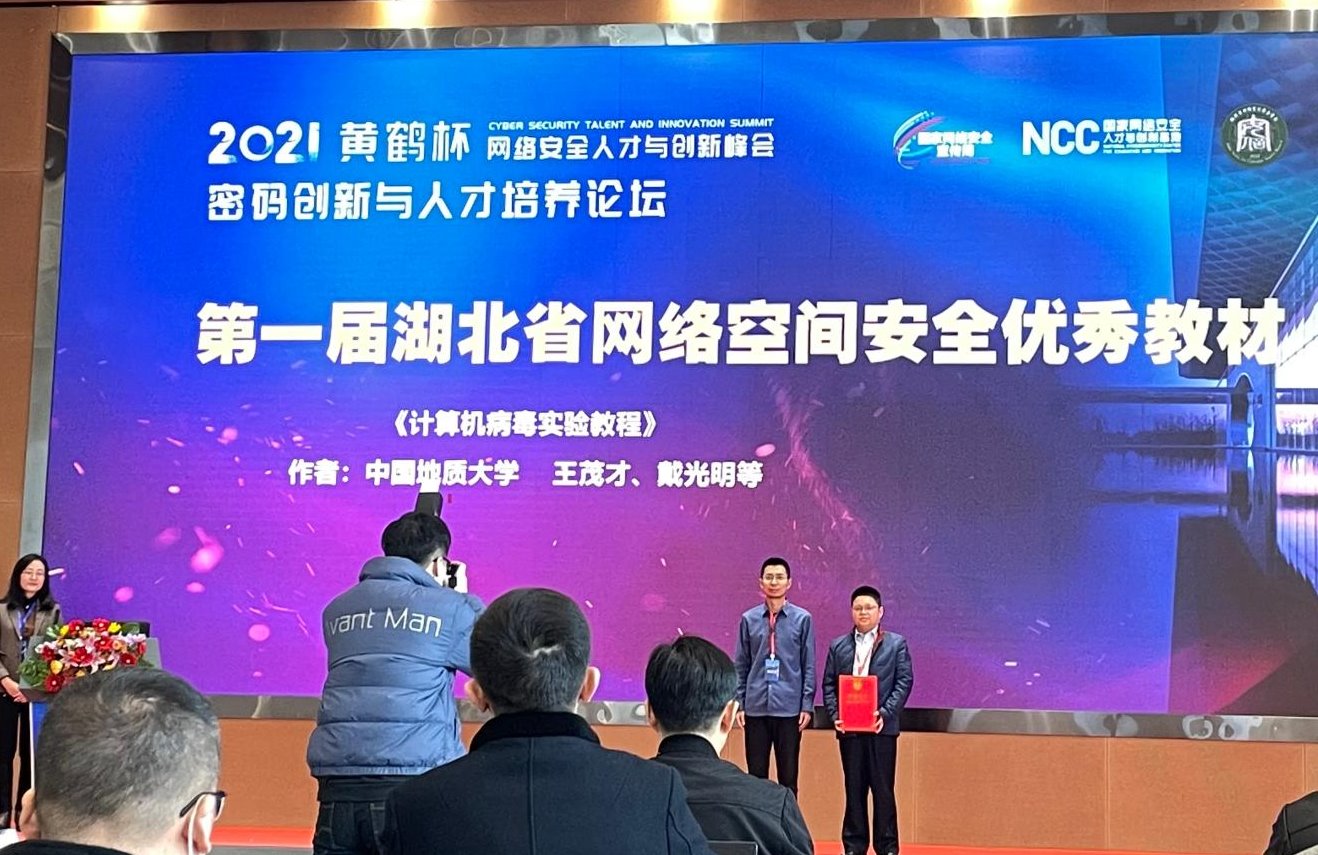 在2021年12月21日举行的2021“黄鹤杯”网络安全人才与创新峰会密码创新与人才培养论坛上,中共湖北省委网信办网络安全与技术处领导王深对湖北省首届网络空间安全优秀教材进行了颁奖。