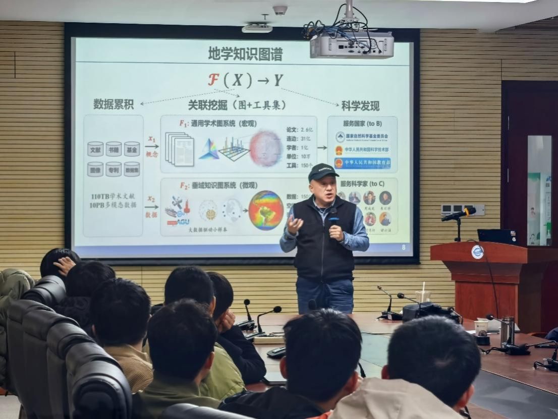 报告中,王新兵教授围绕智能时代背景下知识图谱技术的发展需求,系统阐述了知识图谱在多源异构数据组织、知识抽取、表示、存储及推理中的关键作用,重点介绍了其团队主持开发的亿级节点知识图网络系统ACEMAP和系列应用成果。该系统构建了目前全球规模最大的多模态地学知识图谱之一,覆盖1900万余个实体和1.4亿余条实体关联关系,在学术知识服务与智能分析领域产生了广泛影响。王教授特别强调了跨学科交叉创新和实际应用落地的重要性。