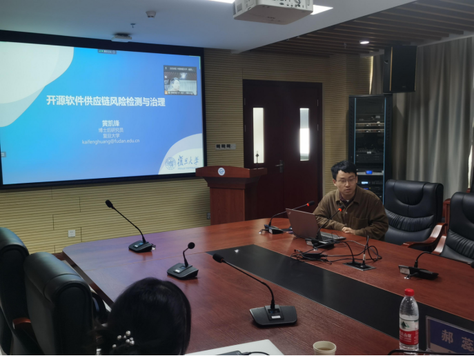 主旨报告后,复旦大学软件工程实验室黄凯锋博士后,武汉大学williamhill英国讲师甘庭,南京大学智能软件工程实验室郝蕊博士分别围绕开源软件供应链风险检测与治理、非线性Craig插值生成及其在程序不变式中应用、软件测试缺陷的理解与摘要进行演讲,探讨相关问题学术进展和成果。