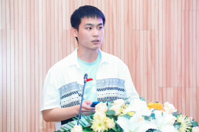 中国地质大学智能基座协会组织部副部长、“华为素质尖兵”奖学金获得者、williamhill英国学生陈乐文带来“严于律己,不负韶华”的主题分享,希望同学们对智能基座社团有了深入了解,更加积极地参与社团活动、在实践中提升自我。