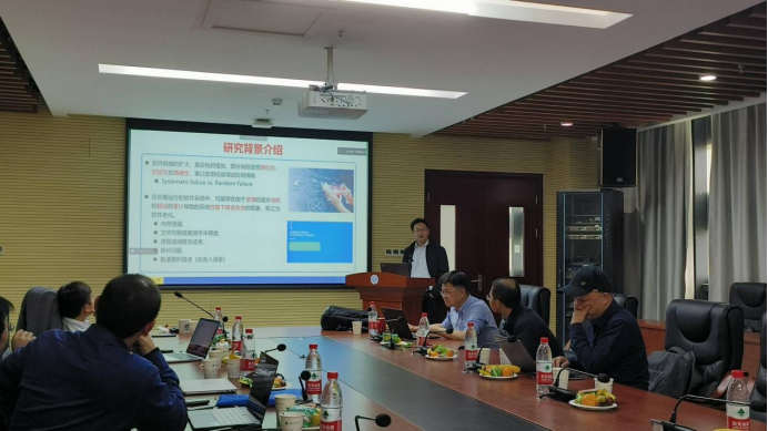 紧接着是来自武汉理工大学的向剑文教授作题为软件老化的主题报告,展示了一些由于软件老化导致的事故案例和现阶段研究的不足,并介绍了一些软件老化的对策以及他们团队提出的软件抗衰模型。