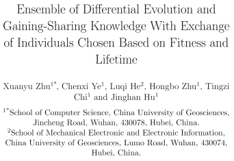 近日,在大数据系李程俊老师的指导下,计算机科学与技术专业的本科生朱轩宇以第一作者撰写的论文《Ensemble of Differential Evolution and Gaining-Sharing Knowledge With Exchange of Individuals Chosen Based on Fitness and Lifetime》,被老牌国际期刊《Soft Computing》(T3)接收。本篇论文,是李程俊老师指导本科生成功发表的第二篇论文,为后续大学生挑战杯大赛积累实力。