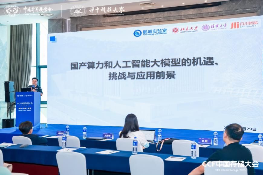 华中科技大学、鹏城实验室刘方明教授在《国产算力和人工智能大模型的机遇、挑战与应用前景》报告中,从产业生态与技术发展的双重角度出发,深入分析了国产算力体系在大模型应用浪潮中的战略机遇与现实挑战(图3)。他指出,构建自主可控的算力底座对于人工智能产业生态至关重要,并结合应用案例展望了国产算力与大模型协同发展的前景。