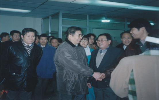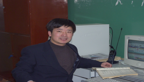 计算机系主任康立山指导参加挑战杯赛的学生(2004年5月)