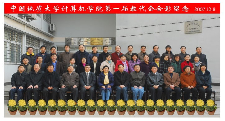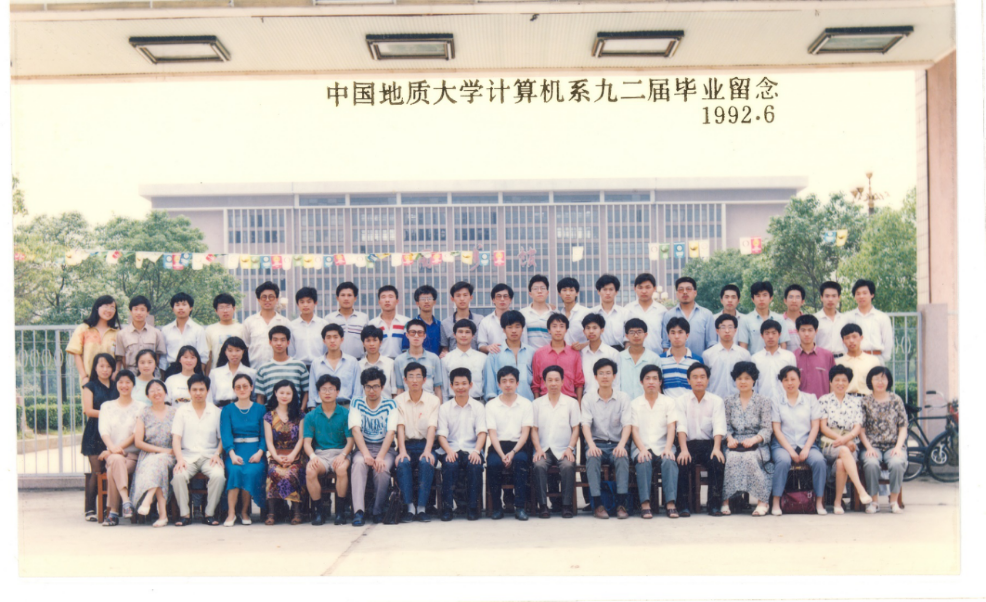 参加校学代会的计算机系学生代表及校、系领导合影(1988年)